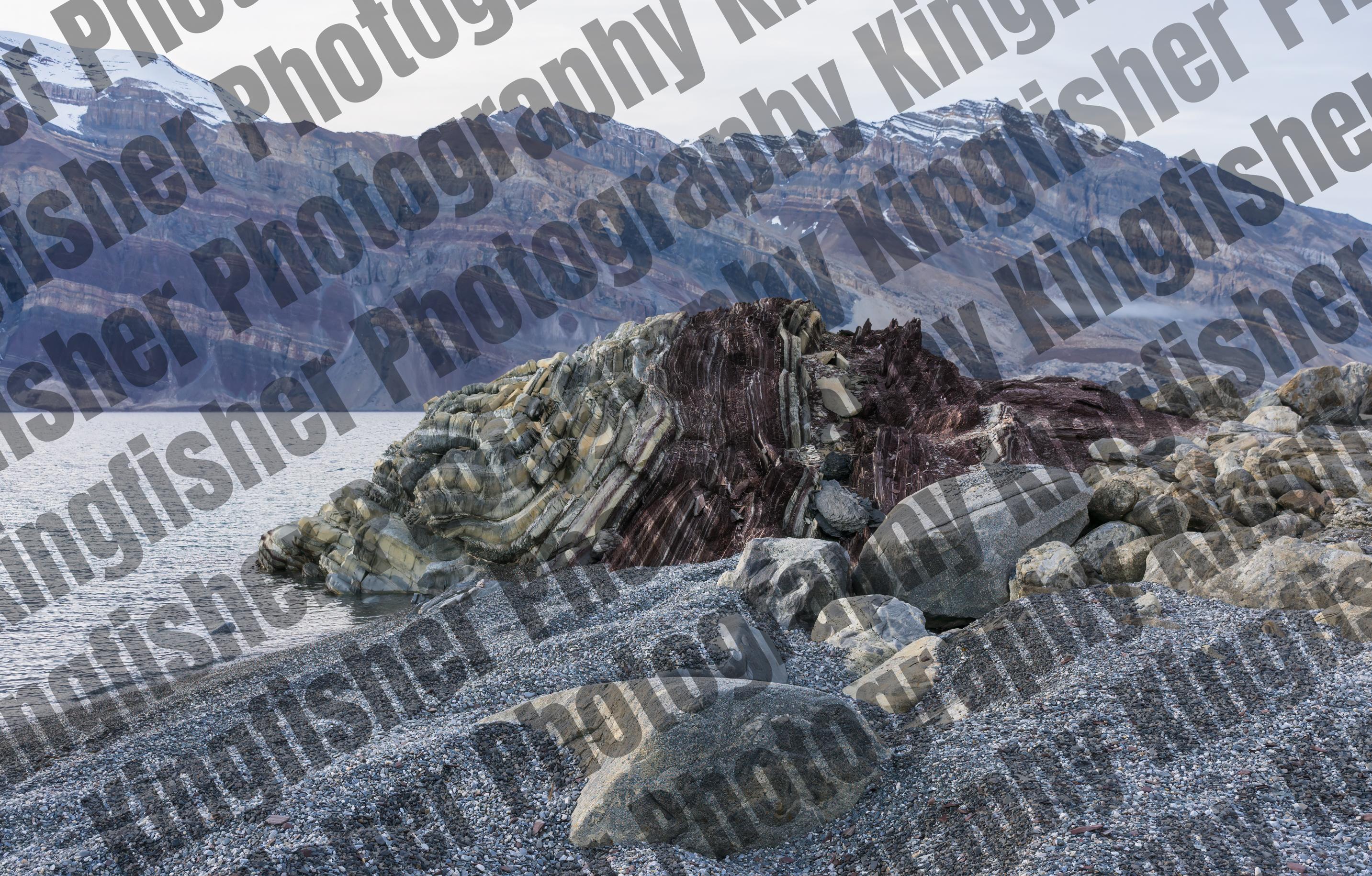 Rocks of the Eleonore Bay Supergroup on an outcrop at the entrance to Segelsällskapet Fjord, East Greenland