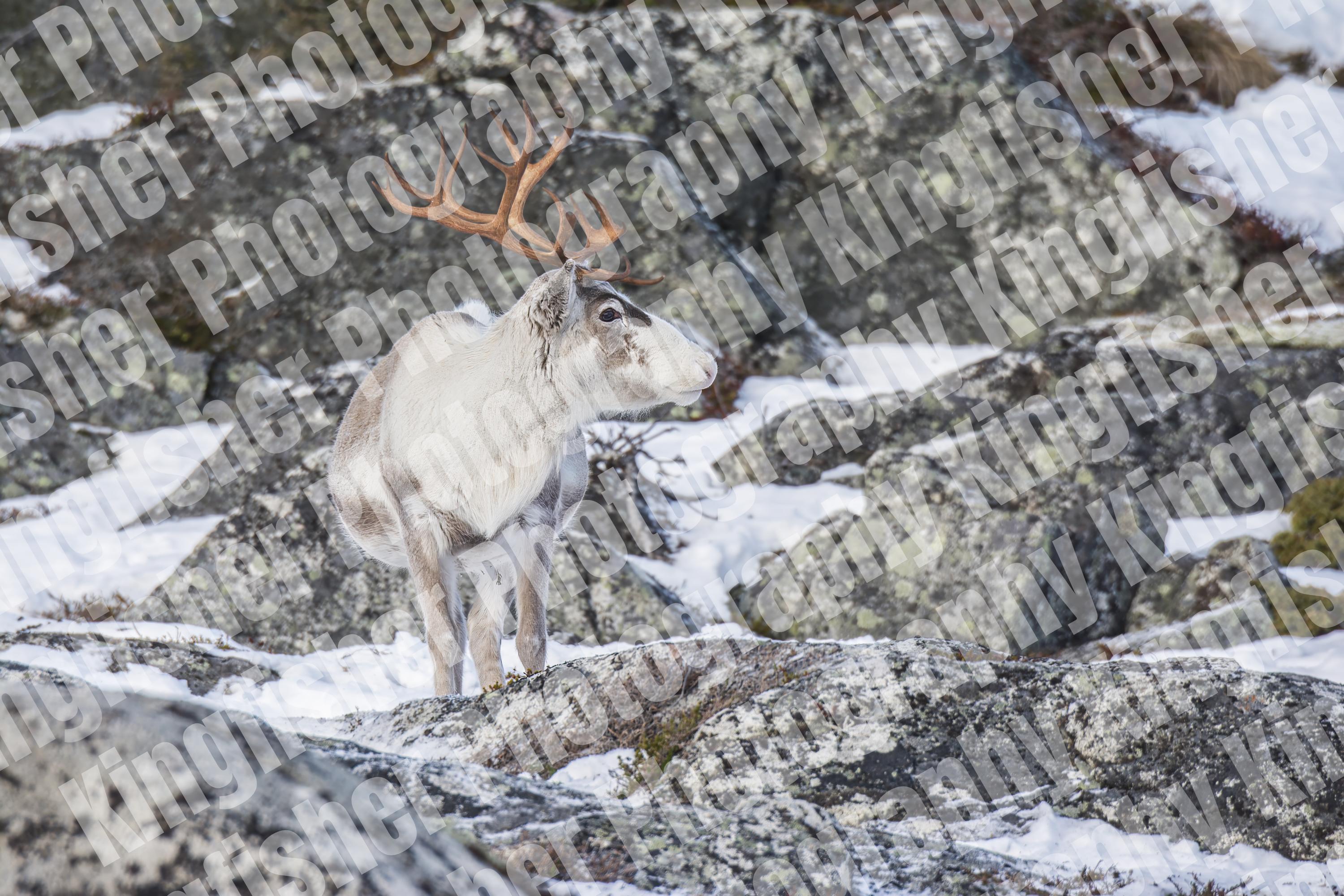 A reindeer is standing in the countryside of the Lofoten, Norway