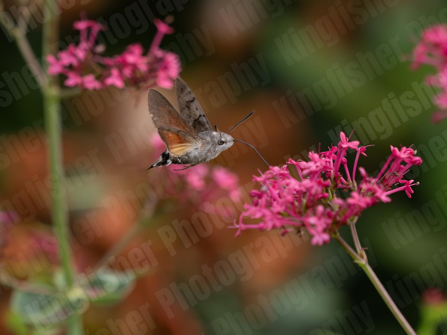 Macroglossum stellatarum feeding on a red valerian